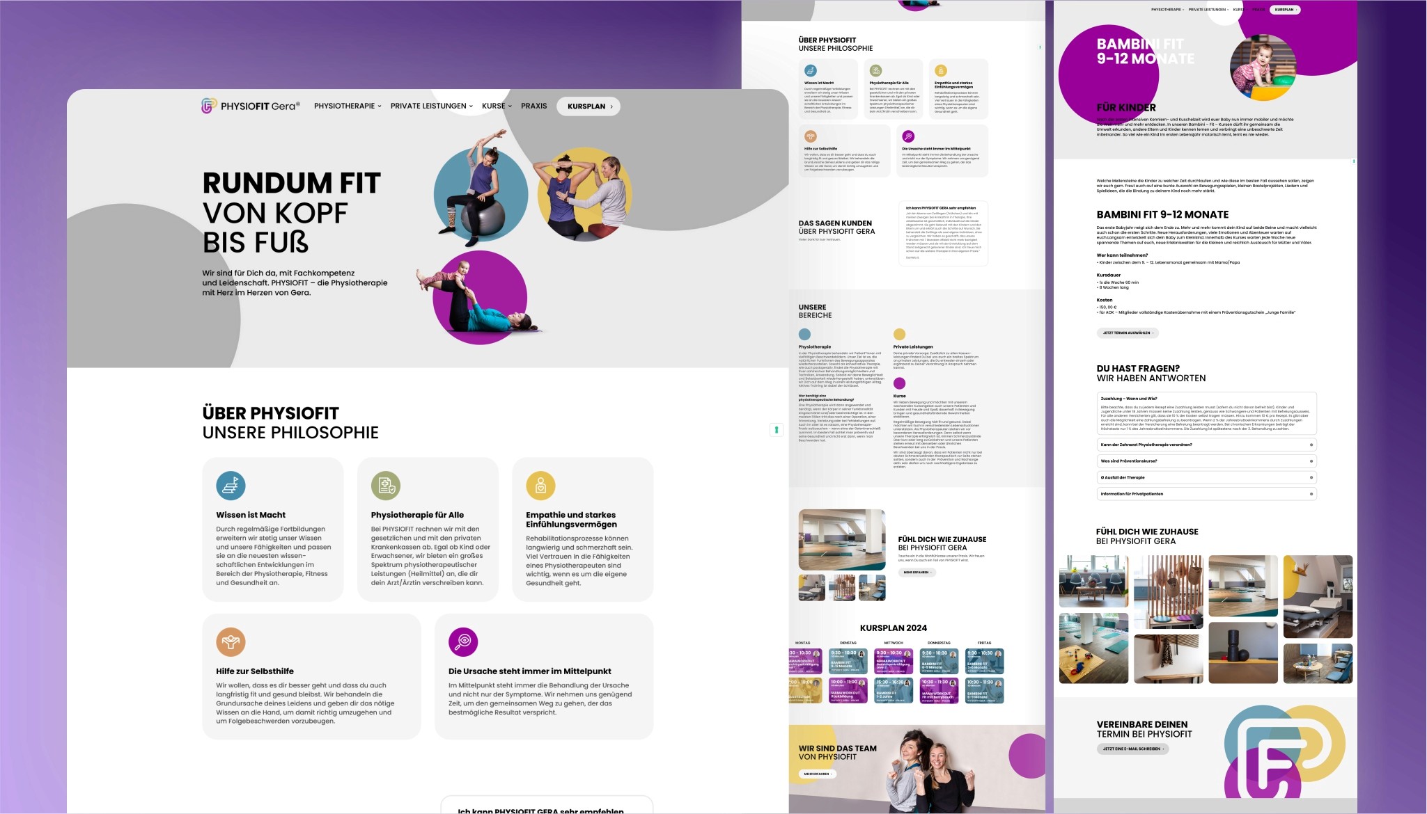 Mit PhysioFit Gera wurde eine neue physiotherapeutische Praxis gegründet – mitten in der Innenstadt von Gera, mit einem besonderen Fokus auf ganzheitlicher Betreuung und einem vielseitigen Kursprogramm. Aufgabe war es, eine Marke von Grund auf zu entwickeln, die sowohl Vertrauen als auch Nahbarkeit und Professionalität vermittelt.