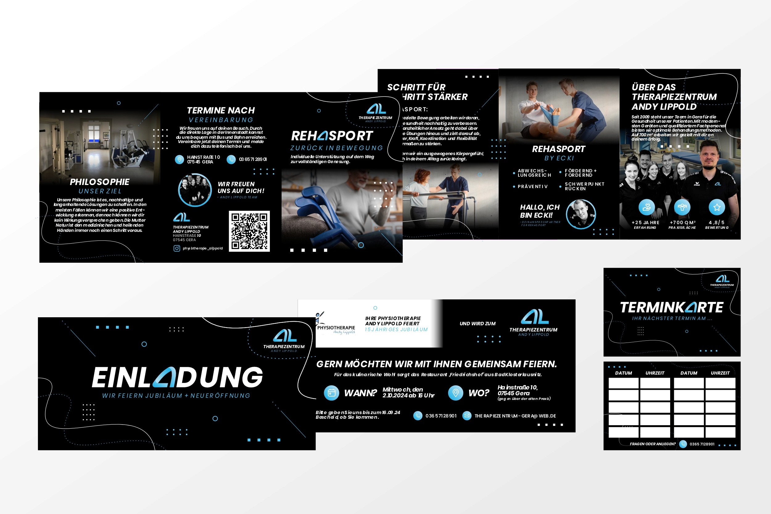 Der neue Auftritt positioniert das Therapiezentrum Andy Lippold als modernes, erfahrenes und vertrauensvolles Zentrum für ganzheitliche Therapie. Die klar strukturierte Markenwelt sorgt für Wiedererkennung, Orientierung und einen professionellen Gesamteindruck. Ein Erscheinungsbild, das Kompetenz ausstrahlt, Nähe schafft und die Haltung des Therapiezentrums authentisch widerspiegelt.