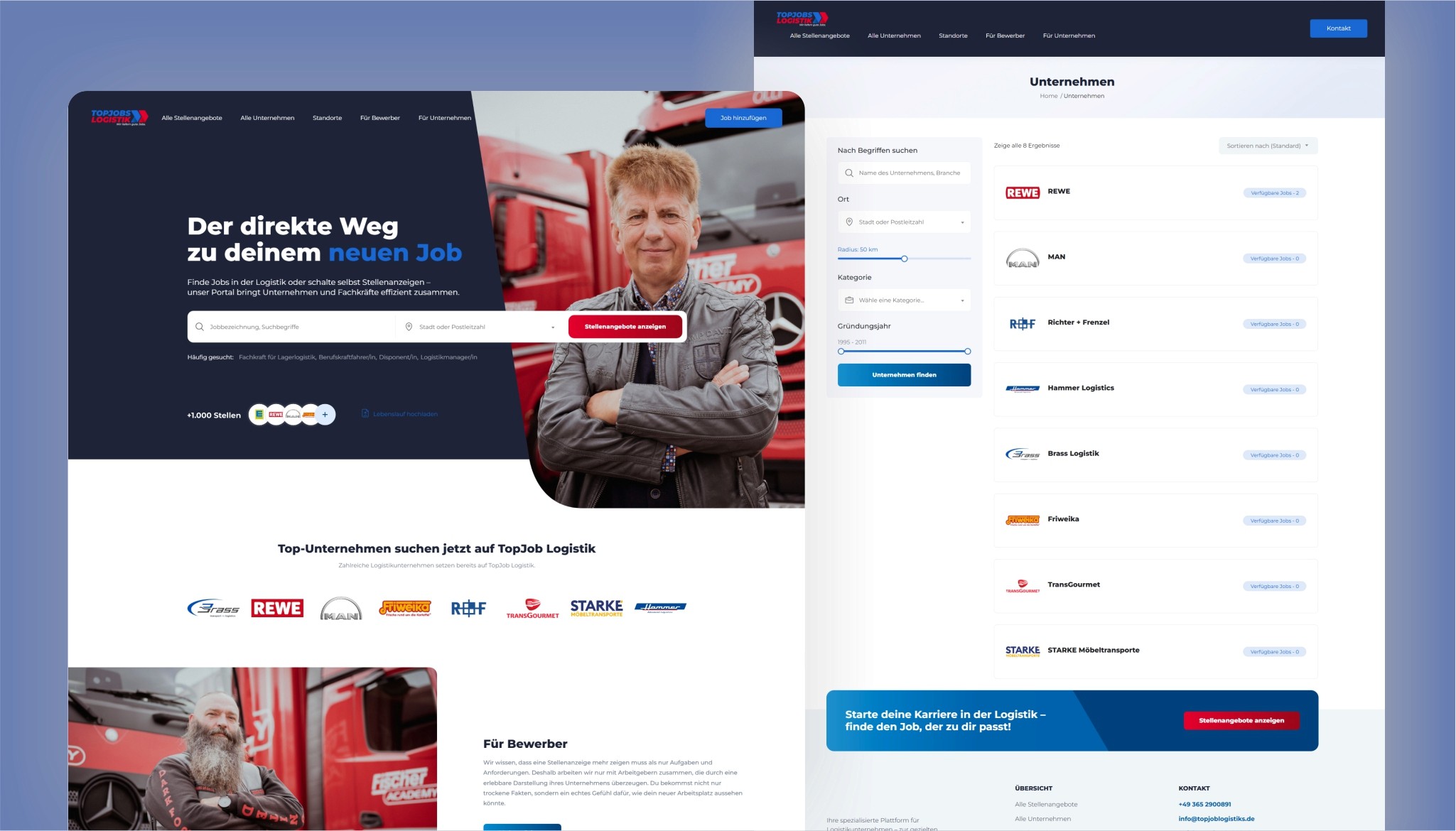 Website für eine spezialisierte Job- und Arbeitgeberplattform im Logistikbereich
